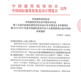 2018-2019年度中國建築飾り業界影響力のあるデザイン企業トップ10