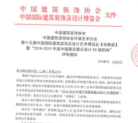 2018-2019年度中國展覧展示デザイントップ50企業